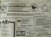 | 09:59, 17. Jun. 2009 | 1981 Zeitungsanzeige.jpg (Datei) | 430 KB | Admin | Anzeige im „Thüringer Tageblatt“ zu Beginn des Festivals | 1 | |